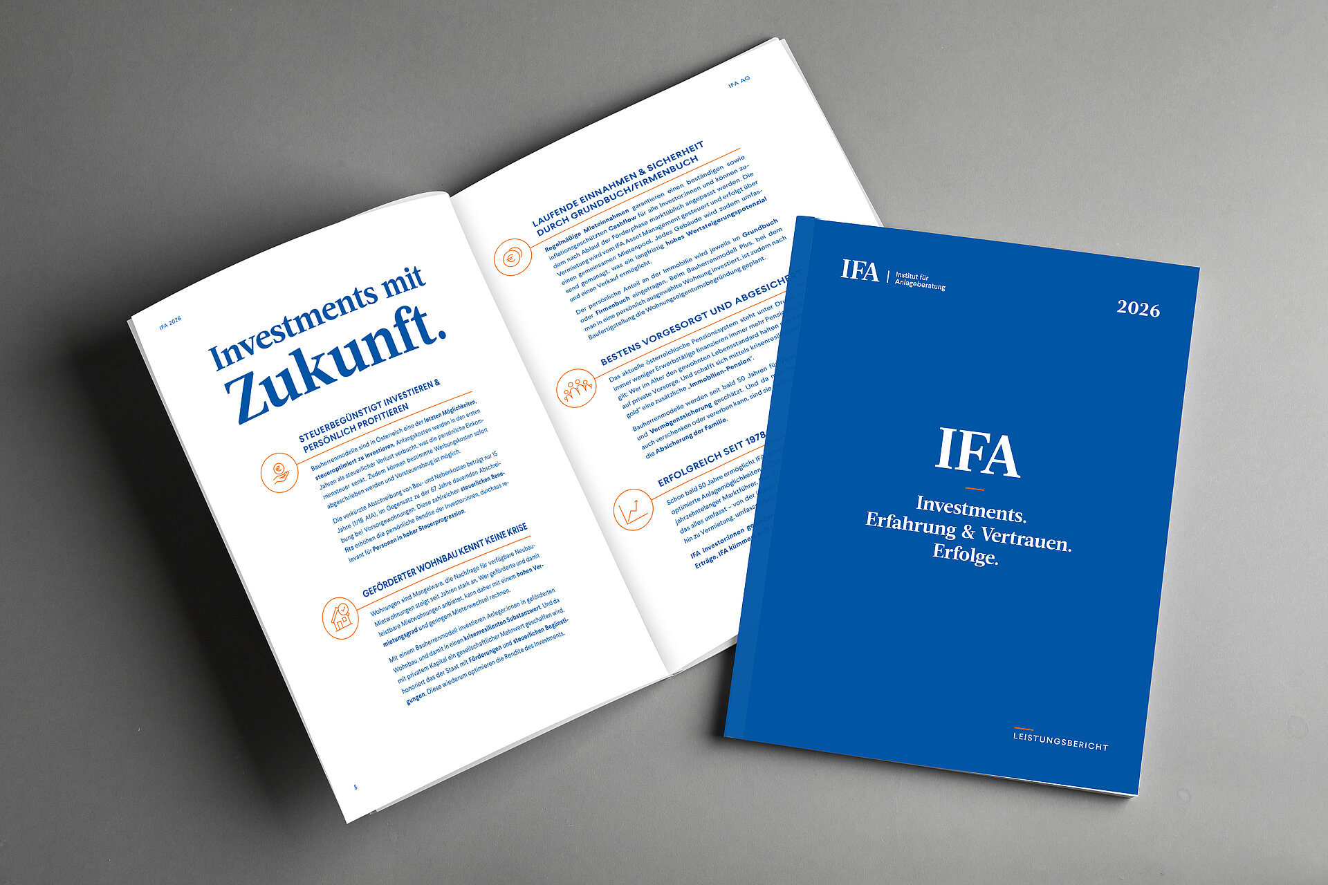 Unsere Erfolge, Projekte, Investments, Kennzahlen. Hier finden Sie den IFA Leistungsbericht zum Durchblättern und Schmökern.