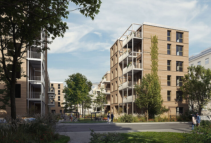 - Bei der „Baumstadt Floridsdorf“ wird eine 150 Jahre alte Siedlung revitalisiert, nachverdichtet und zum Vorzeigeprojekt für geförderten Wohnbau