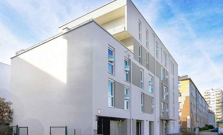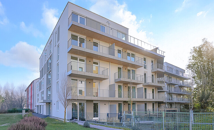 Ein Monat früher als geplant hat IFA im November 2024 das geförderte Mietwohnbauprojekt „Josef-Pock-Straße 1-3“ in nur 19 Monaten Bauzeit fertiggestellt. Bei Fertigstellung waren bereits 27 der 32 geförderten Mietwohnungen sowie alle 15 PKW-Tiefgaragenplätze vermietet.