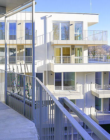 Jede der 32 Wohnungen verfügt über private Freiflächen wie Garten, Balkon oder Terrasse, zusätzlich gibt es einen großzügigen, 160 Quadratmeter großen Gemeinschaftsgarten. IFA setzt auf Nachhaltigkeit und plant vorausschauend: Für grüne Mobilität bzw. E-Ladestationen sind alle nötigen Vorbereitungen in der Tiefgarage abgeschlossen. Die effiziente Versorgung mit Heizung und Warmwasser erfolgt umweltfreundlich durch Fernwärme. Vorbereitungen für die Installation einer Photovoltaik-Anlage auf dem extensiv begrünten Dach sind ebenfalls bereits jetzt abgeschlossen.